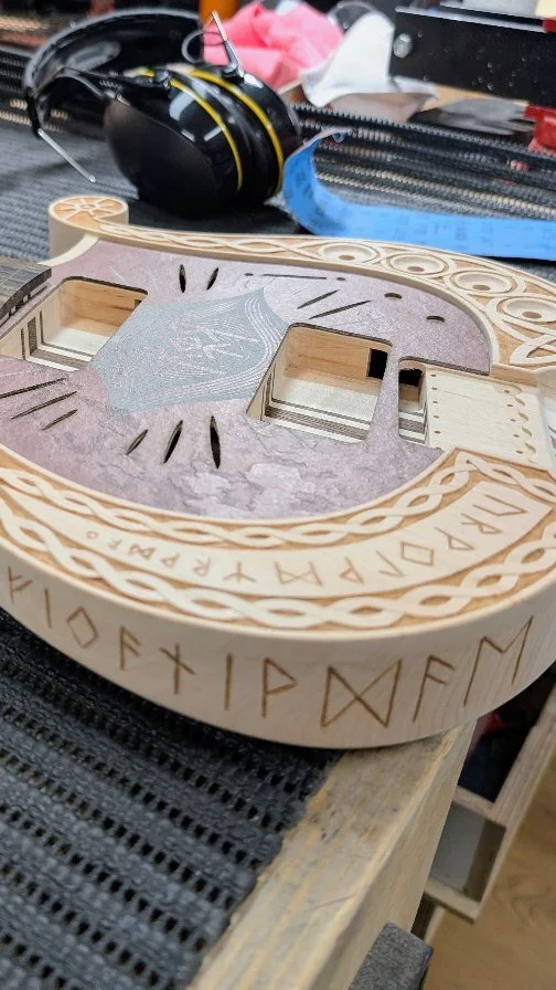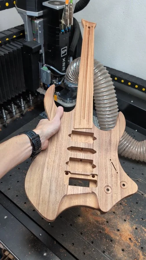While I don't have any hired human help, being an engineer myself I love to harness technology to make my job easier. For guitar building, this manifests itself in my robot assistant the CNC router. It allows me to cut out the exact shape I want for the guitar as well as create intricate inlay with relative ease. But if you think it does all the work, sadly you couldn't be further from the truth.