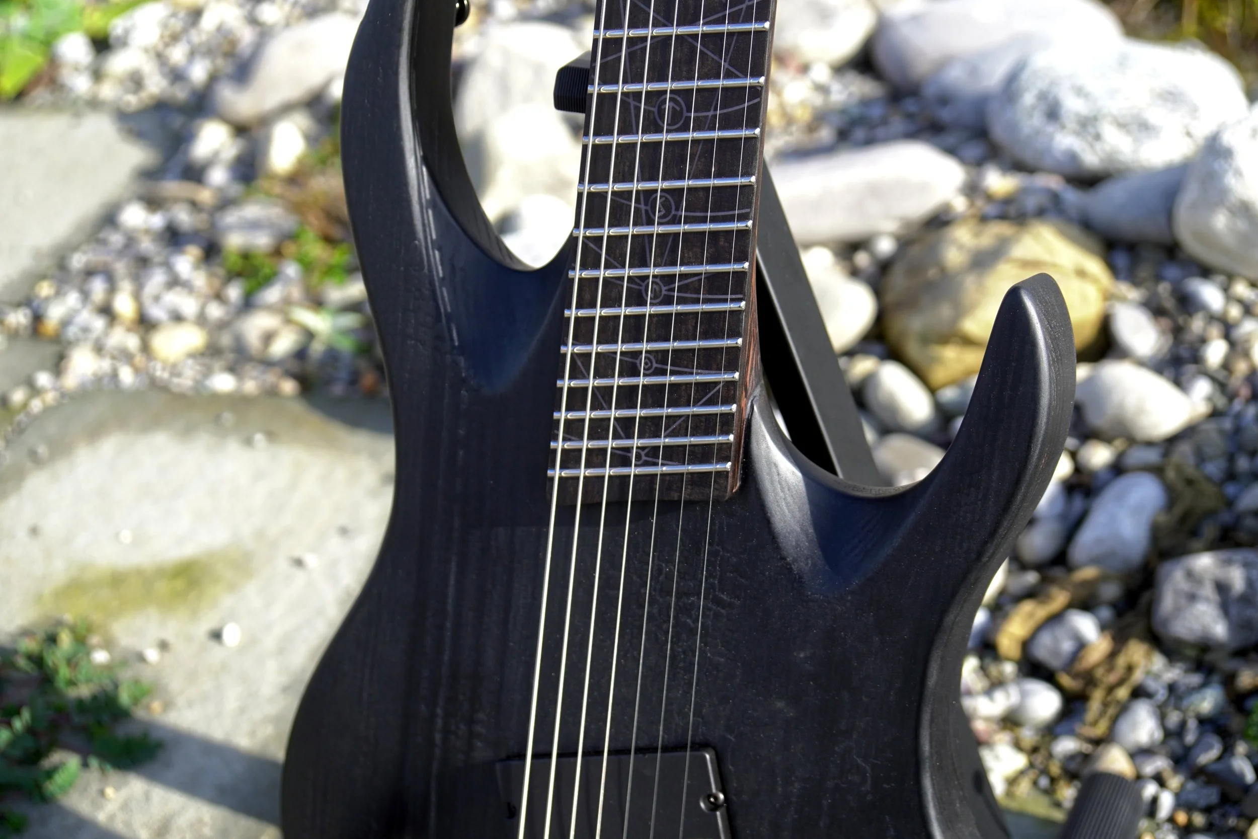 Burnt to a crisp and imbued with dark spirits this evil axe will summon the most gnarly tones. With 7 strings and a single EMG pickup the heavy riffs will just flow right out of this guitar.