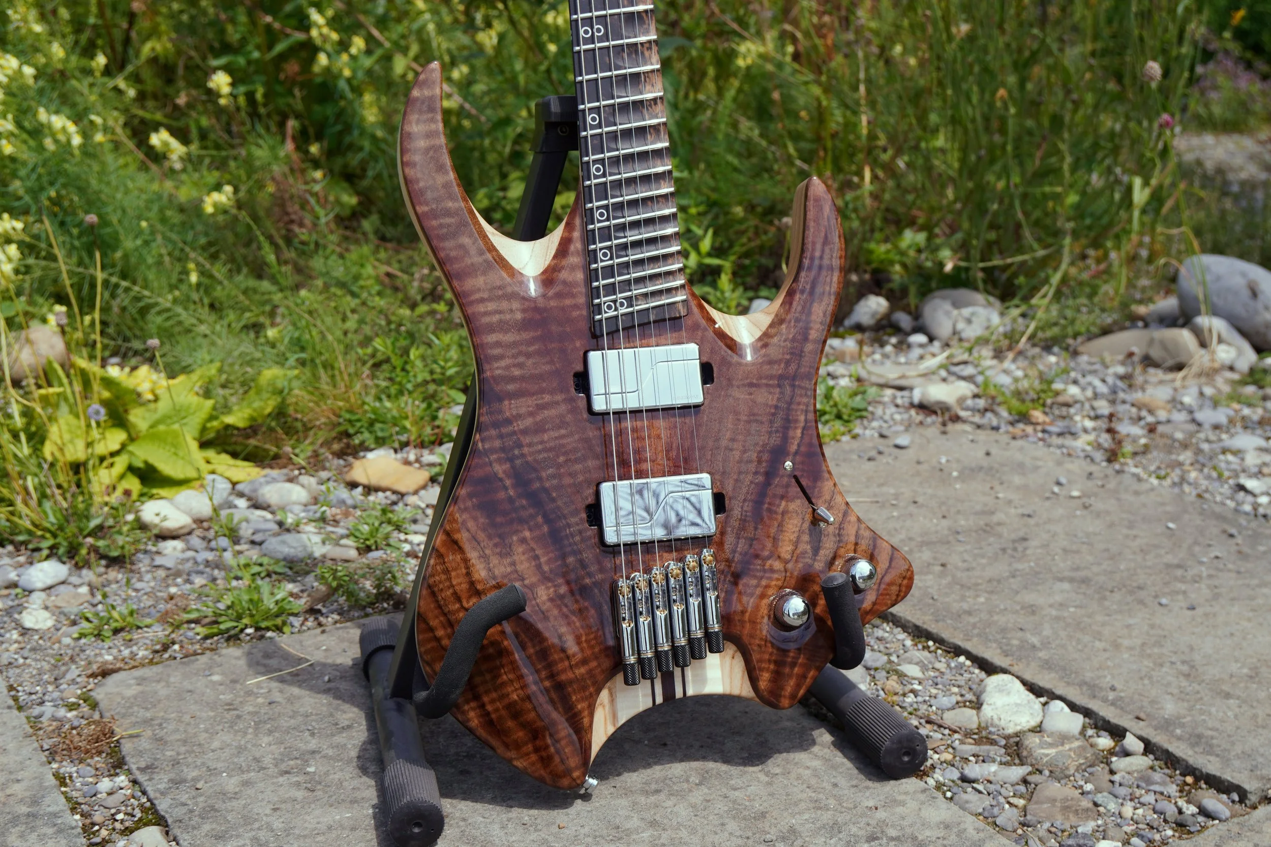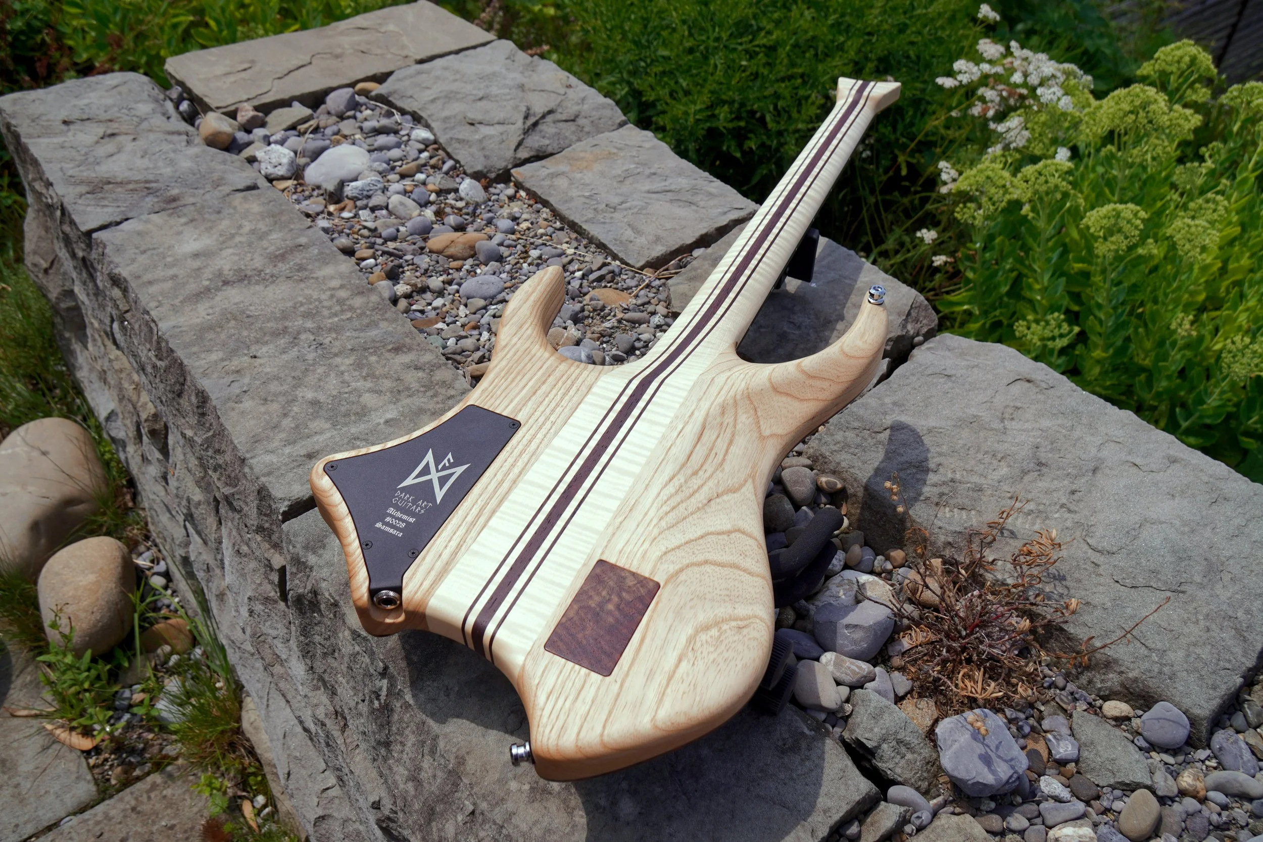 The first neck-through build from the Dark Art Guitars forge. This guitar is the culmination of 2 years refining the Alchemist shape. It is even more ergonomic than the original and combines elegance with aggression for a striking appearance.