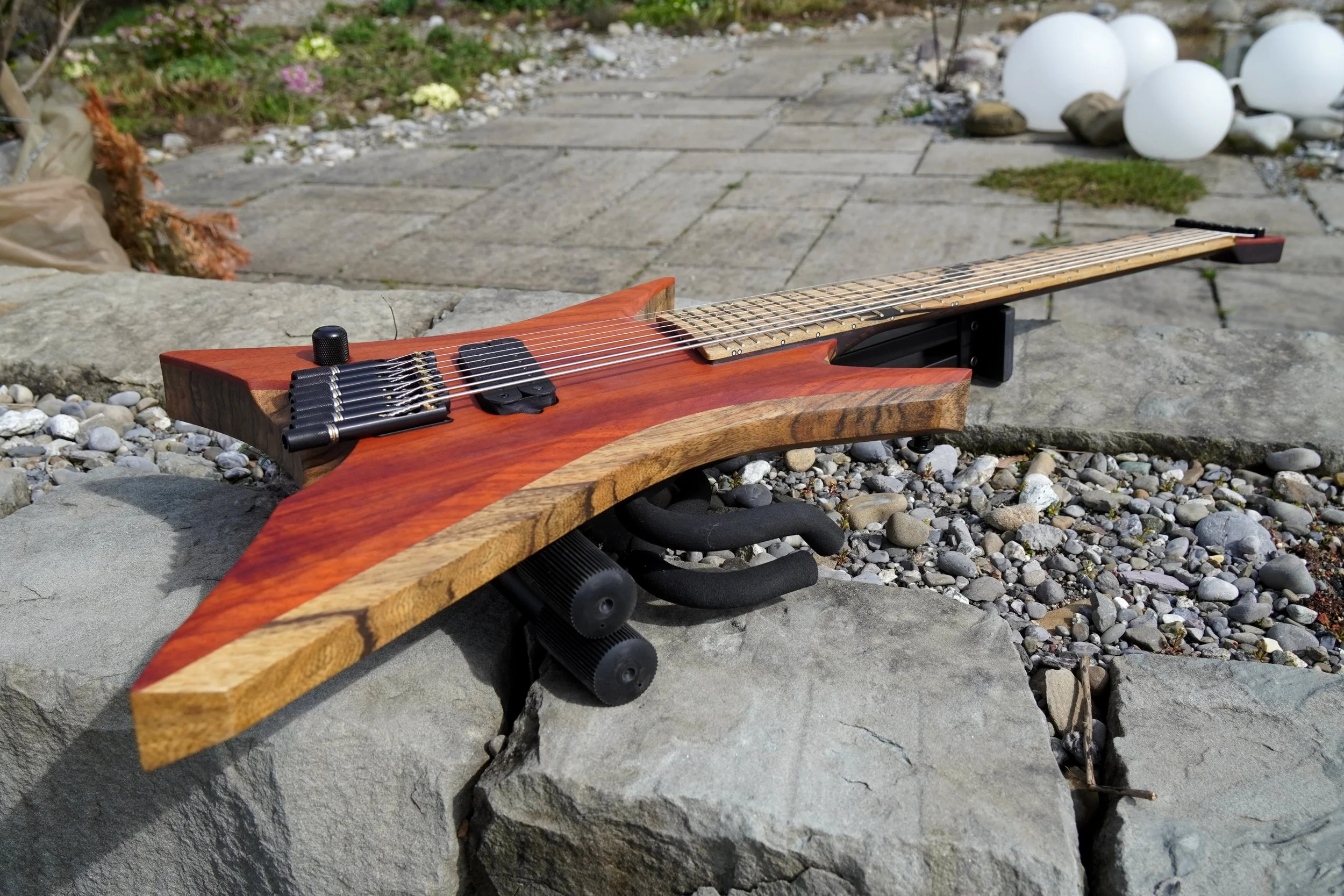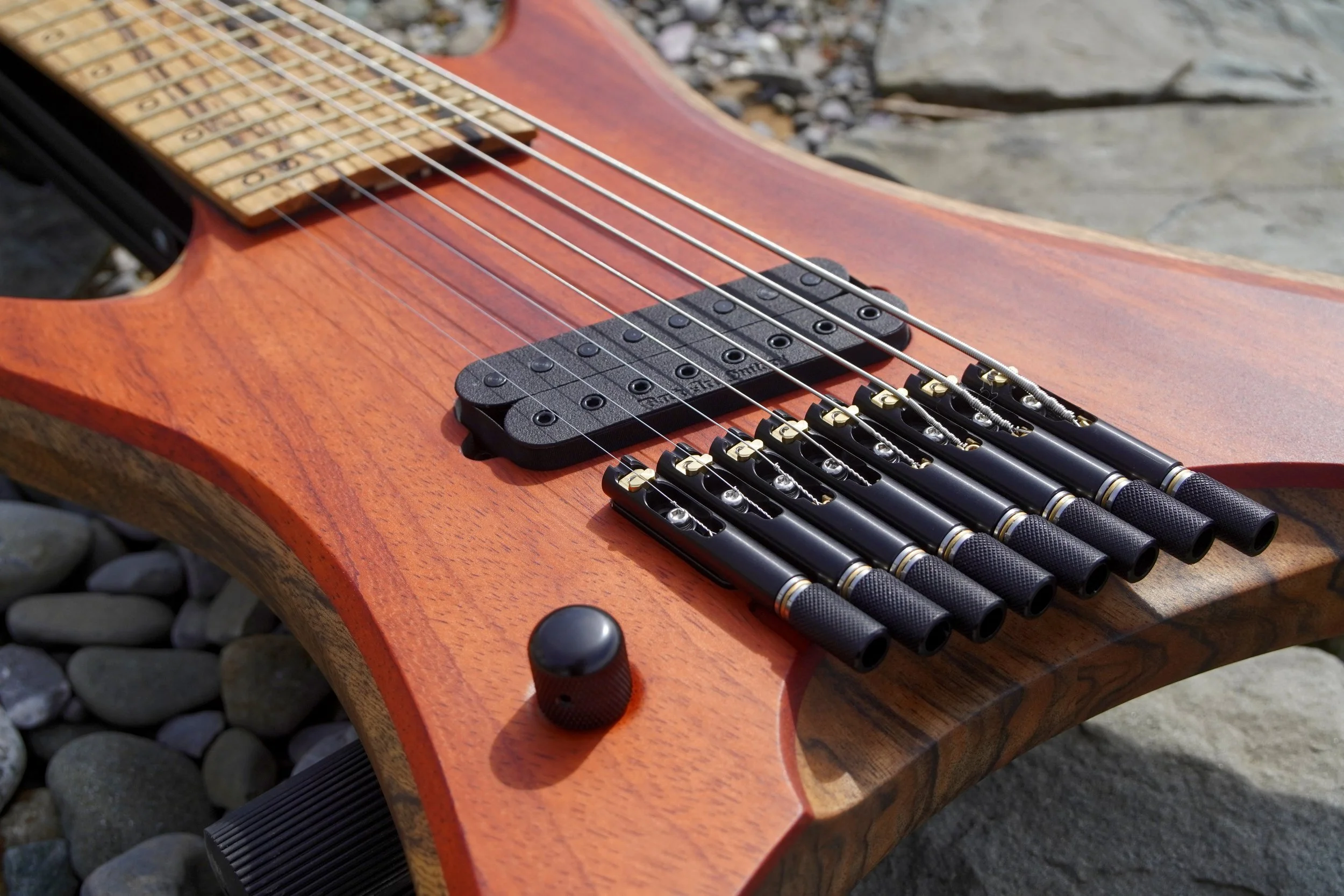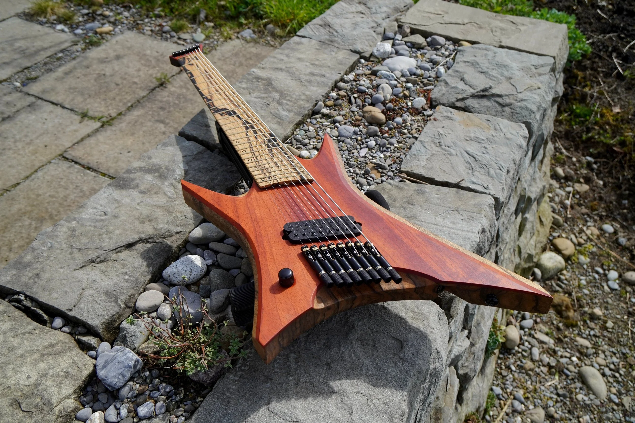 Elegance and brutality. This 8-stringed beast only keeps the essentials and lets nothing get in the way of heavy riffs. At the same time, it boldly features some of mother nature’s most exquisite artworks.